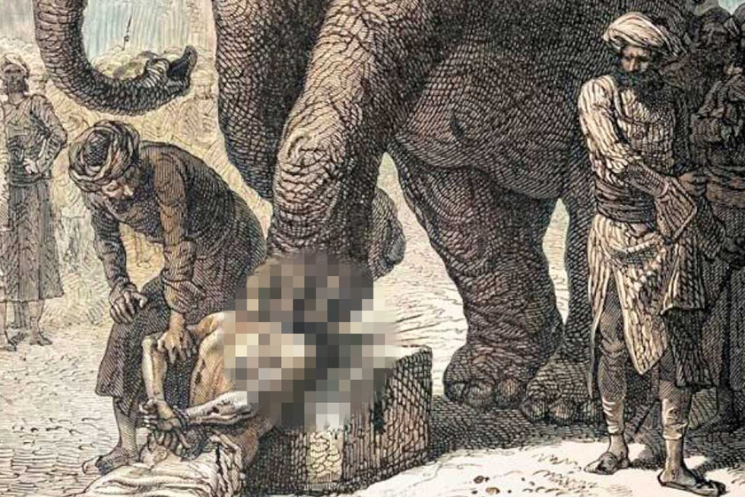 De entre todas las rarezas e historias que los europeos traían de sus viajes a Asia, una de las que más sorprendían en el Viejo Continente era la de la ejecución por elefante, una práctica recurrente en países como la India donde, valiéndose de elefantes adiestrados, se torturaba a los prisioneros aprovechando la fuerza y peso de estos majestuosos animales.