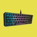 Concretamente, estamos ante el Corsair K65 RGB Mini. Un teclado gaming con mayúsculas a pesar de su formato ultra compacto por su construcción en 60%, una tendencia al alza. Cada vez vemos más modelos que no sólo prescinden del apartado numérico de la zona derecha (los conocidos como TKL), si no que van un pasito más allá e incluso eliminan las teclas de dirección y sus superiores. Dando como resultado modelos pequeños que encajan a las mil maravillas en setups donde el espacio es un problema.