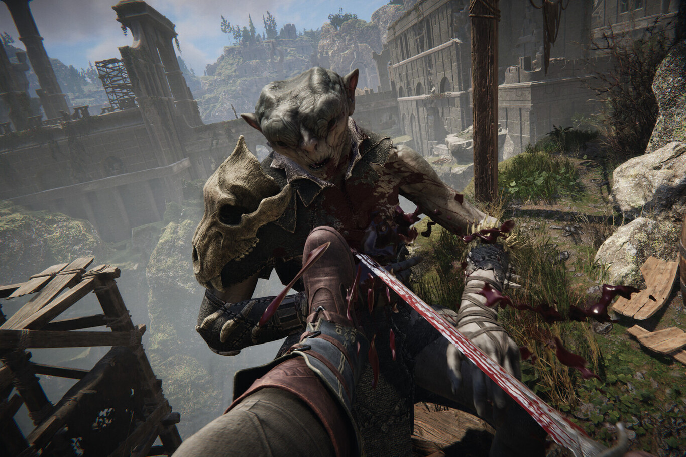 Si bien el gameplay muestra escenas que parecen coreografiadas, dispuestas para mostrar la mejor cara del juego, el equipo de Push On insiste en la idea de que lo que vemos es lo que podemos esperar en una partida normal en este RPG de acción y fantasía. Como puedes comprobar, es un juego que apuesta sobre todo por el combate cercano, es visceral, muy violento y hasta sucio, en el sentido de que todo vale con tal de sobrevivir. Además de las espadas podemos recurrir a la alquimia, usando pociones y otros artilugios para provocar el caos a nuestro alrededor. Al ver esta parte en acción me ha resultado imposible no acordarme de juegos legendarios como los de la saga Thief. Entre otras opciones, puedes imbuir tu espada con ciertos elementos, o lanzar pociones a las hogueras y antorchas para provocar explosiones; además de otras clásicas como derribar partes del escenario o lanzar a los enemigos por un precipicio.