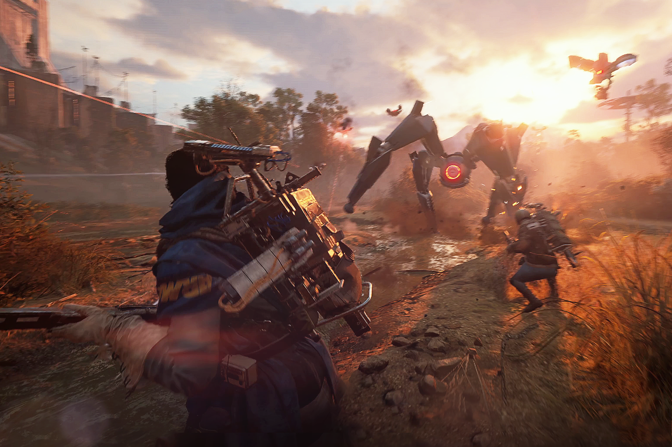Si disparas a las turbinas de los drones, estos pierden el equilibrio por ese lado; y quizá hasta se choquen entre sí o contra el escenario. A los saltadores les pasa algo parecido: cuando te detectan, son capaces de brincar incluso hasta los tejados de los edificios con tal de encontrarte, pero si rompes sus patas se caerán por el lado apropiado. Los bastiones también resultan menos amenazadores si caen por su propio peso y dejan de moverse a medida que los desguazas.