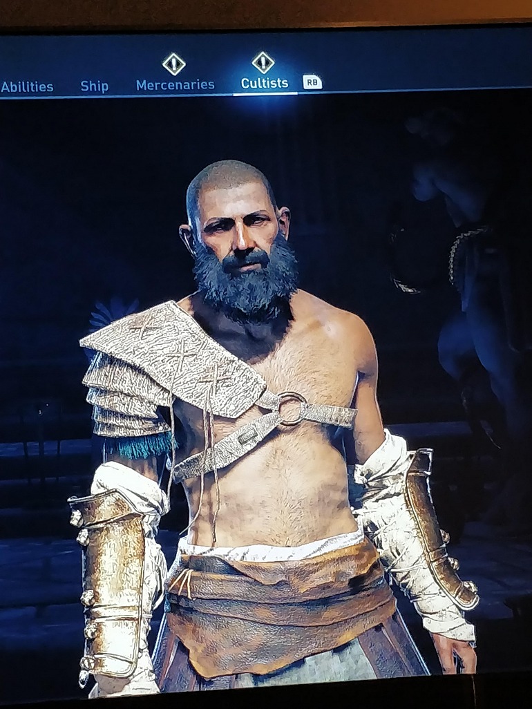 Desde la cabeza calva, hasta la barba, la hombrera, las guardas de los antebrazos o el faldar espartano, todos los elementos de este personaje recuerdan al rediseño realizado por Sony Santa Monica para relanzar la franquicia God of War. ¿Se trata de un guiño del equipo de desarrollo de Ubisoft al GOTY de los The Game Awards 2018?