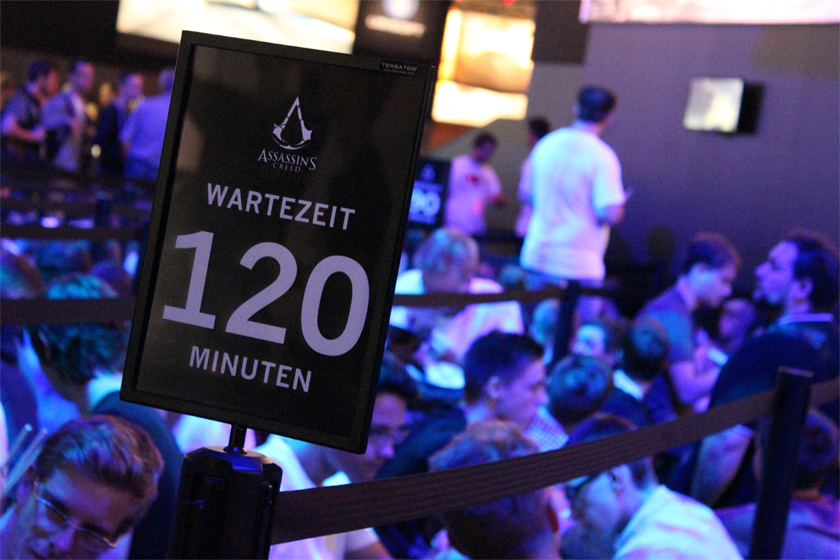 Las colas cultivan la paciencia, y más en la Gamescom. Eran unos cuantos los jugadores germanos que esperaban para poder ver algo de los nuevos Assassin's Creed. ¡Las esperan iban más allá de las dos horas!
