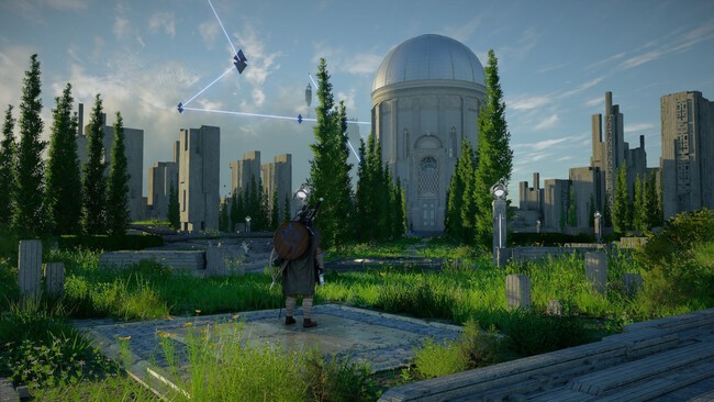 Tras la cinemática que hay al atravesar la puerta, avanza por el portal con forma de triángulo y activa el dispositivo de sintonización con la ayuda de la Fuerza Axiomática. Esto hará que se cree un camino por el que podrás seguir. |