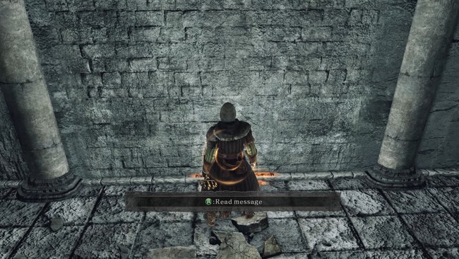 ¿Por qué esto es un problema en Dark Souls 2? Porque en esa entrega, los muros ilusorios se desbloquean presionando el botón de interacción como ocurría en King's Field; y es el mismo botón que presionarías para leer los mensajes. Como decía arriba, algunos 'trolls' solo quieren distraerte con alertas falsas; pero otros colocan sus mensajes muy cerca de muros reales con la esperanza de que te aparezca el 'prompt' de "A: leer" en la interfaz y no puedas accionar el muro.