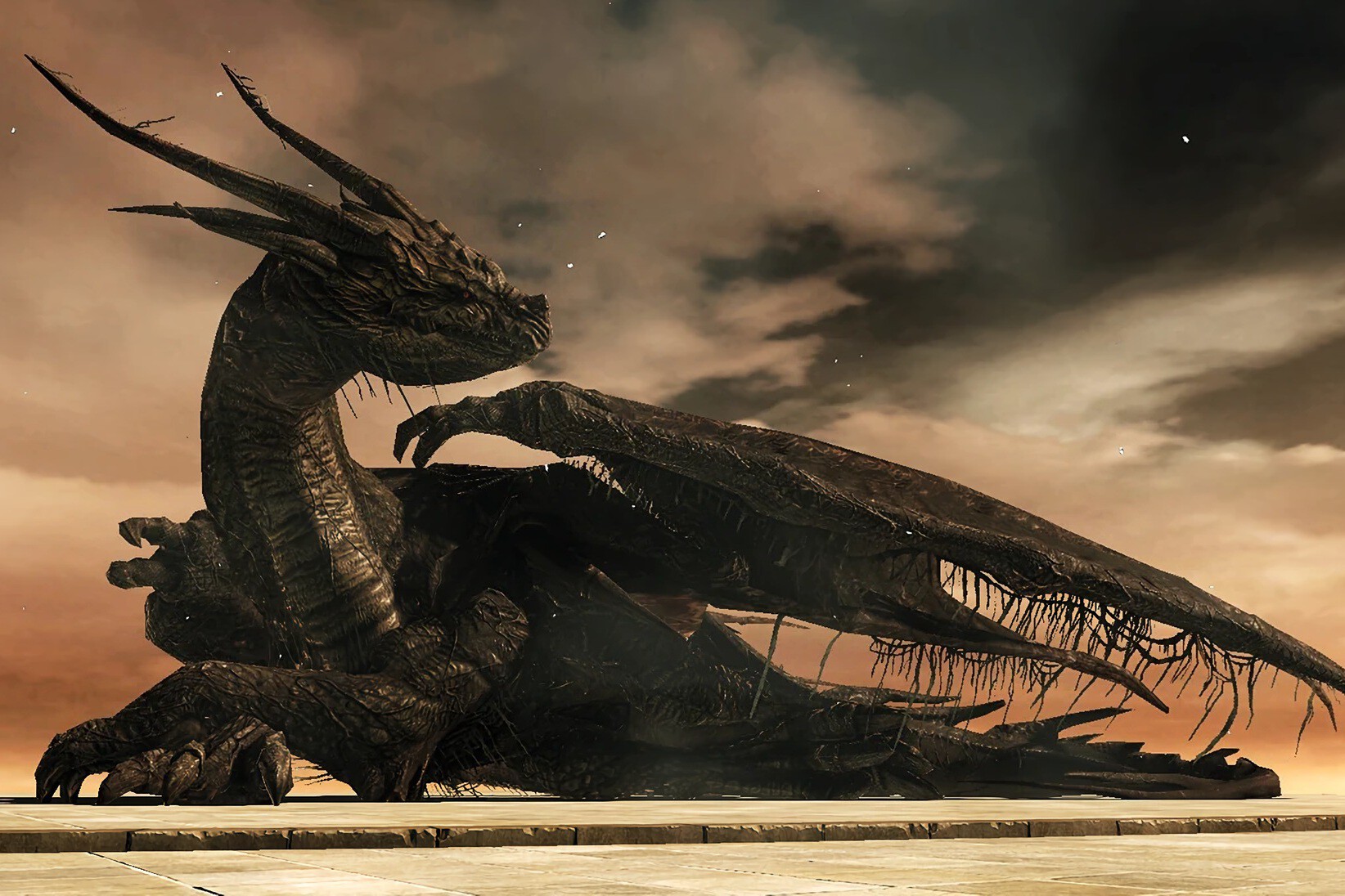 Miyazaki continúa hablando acerca de esa familia de monstruos: "los dragones ancianos de Dark Souls son algo distintos de los dragones convencionales. Son algo así como los minerales del mundo, pues son criaturas trascendentales que han existido antes incluso de que la vida agraciase el mundo. Sin embargo, su tiempo ha terminado y los dragones que quedan son simples supervivientes".