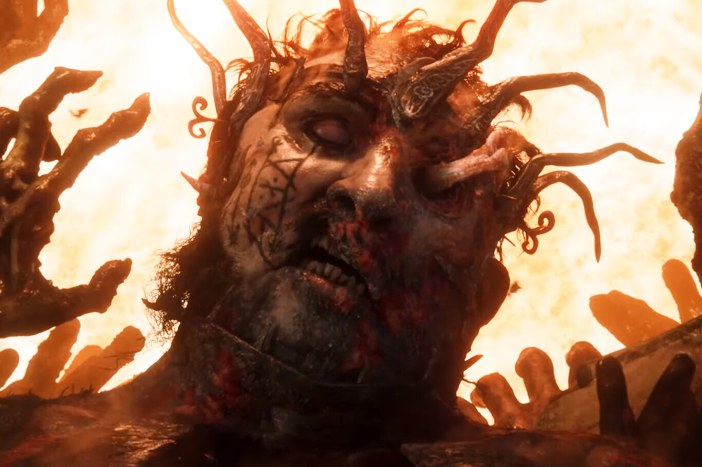 Es también la razón por la que tenemos tantos planos dedicados única y específicamente a ver cómo se derrite la piel del sacrificio durante la pira, por ejemplo. No basta con materializar el mundo en la pantalla: esto va de que lo "toques" con tus ojos. Claro, ni tú ni yo tenemos una lectura real de la magia, pero sí empatizamos con el dolor físico y sabemos interpretar sin que nadie nos lo explique que hay algo raro en que una burbuja de pus explote en sangre ardiendo.