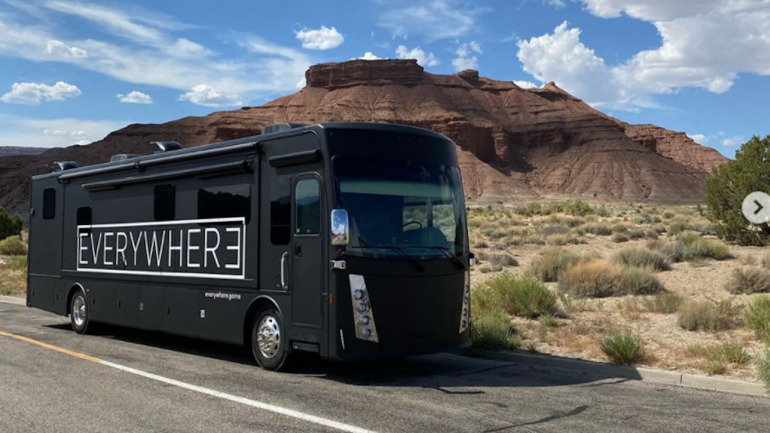Los usuarios se fijaron en una serie de fotografías de Linden con su familia en una caravana de lujo y con el logo de Everywhere en el centro. En principio, Linden no tiene relación con el juego, pero estos usuarios decidieron preguntarle directamente por mensaje privado de Instagram y les respondió, como podemos ver en el post. "Es un nuevo videojuego del creador de GTA, espero que salga el próximo año. El creador es amigo mío y esta es su caravana", comentó.