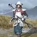 Igual que mientras buscábamos las campanillas, con las cuatro ya en posesión el viento nos dirigirá a una pequeña península que hay al oeste-noroeste de donde encontramos la última campanilla. Tenéis que buscar un tocón al que hay atada una cuerda para bajar por ella; lo distinguiremos mejor si buscamos las dos lanzas que tiene clavadas cerca.