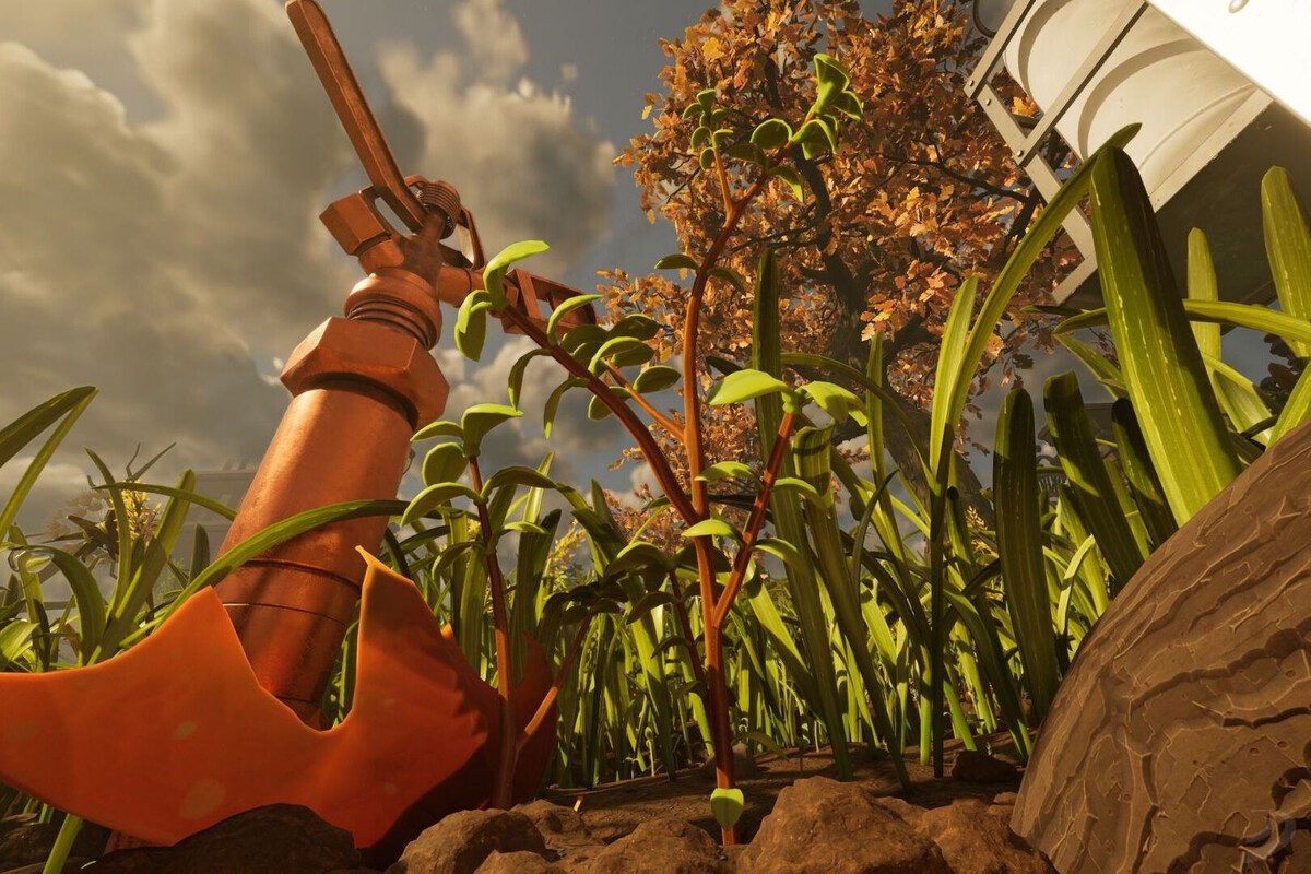 Una vez lo hayas mejorado, podrás dirigirte a cualquier tallo que veas e interactuar con él para talarle. Al hacerlo, y a diferencia de la hierba, caerán un puñado de tallos que te darán para llenar incluso un depósito de almacenaje, por lo que puedes farmear cuatro o cinco para terminar de construir lo que necesites.