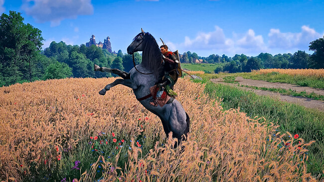 He cabalgado con mi fiel jamelgo —el caballo del prólogo, que podéis conseguir gratis— por el mismo camino que va de Troskovice a Semín más de una treintena de veces, y jamás he pensado en ir al menú y viajar mágicamente de un punto a otro. Ya no es la sensación de que quizá me pierda algo, un encuentro con bandidos o un lobo queriendo que yo sea su cena, sino porque no hay necesidad de romper el ciclo. Warhorse sabe que un buen mundo abierto es aquel natural y lógico casi como salido de un escenario tangible, y lo han aprendido no sin antes tropezar. Porque la ciudad de Talmberg del primer juego, imponente y enorme, respondía a la necesidad de tener algo que hacer, mientras que aquí todo está pensado para nutrir la curiosidad y el apetito por explorar y rolear del jugador.