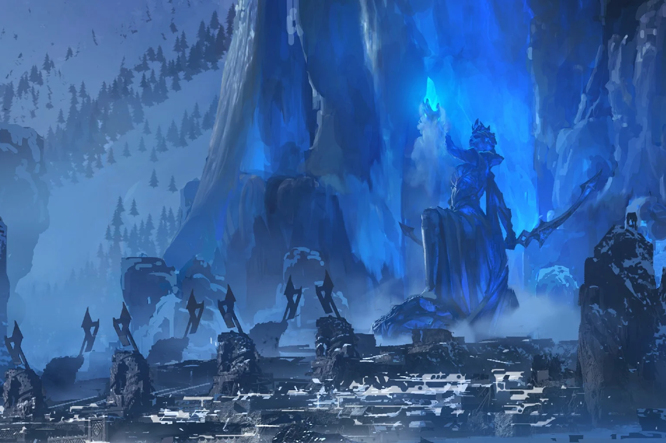 Sin embargo, lo que hace verdaderamente que Freljord pase de ser una simple tierra de fantasía nórdica más a un escenario de horror cósmico es la historia de los Vigilantes del Hielo. Estas entidades, que fueron encerradas bajo el hielo eterno, fueron las primeras en traer la magia al mundo… y también las primeras en intentar destruirlo.