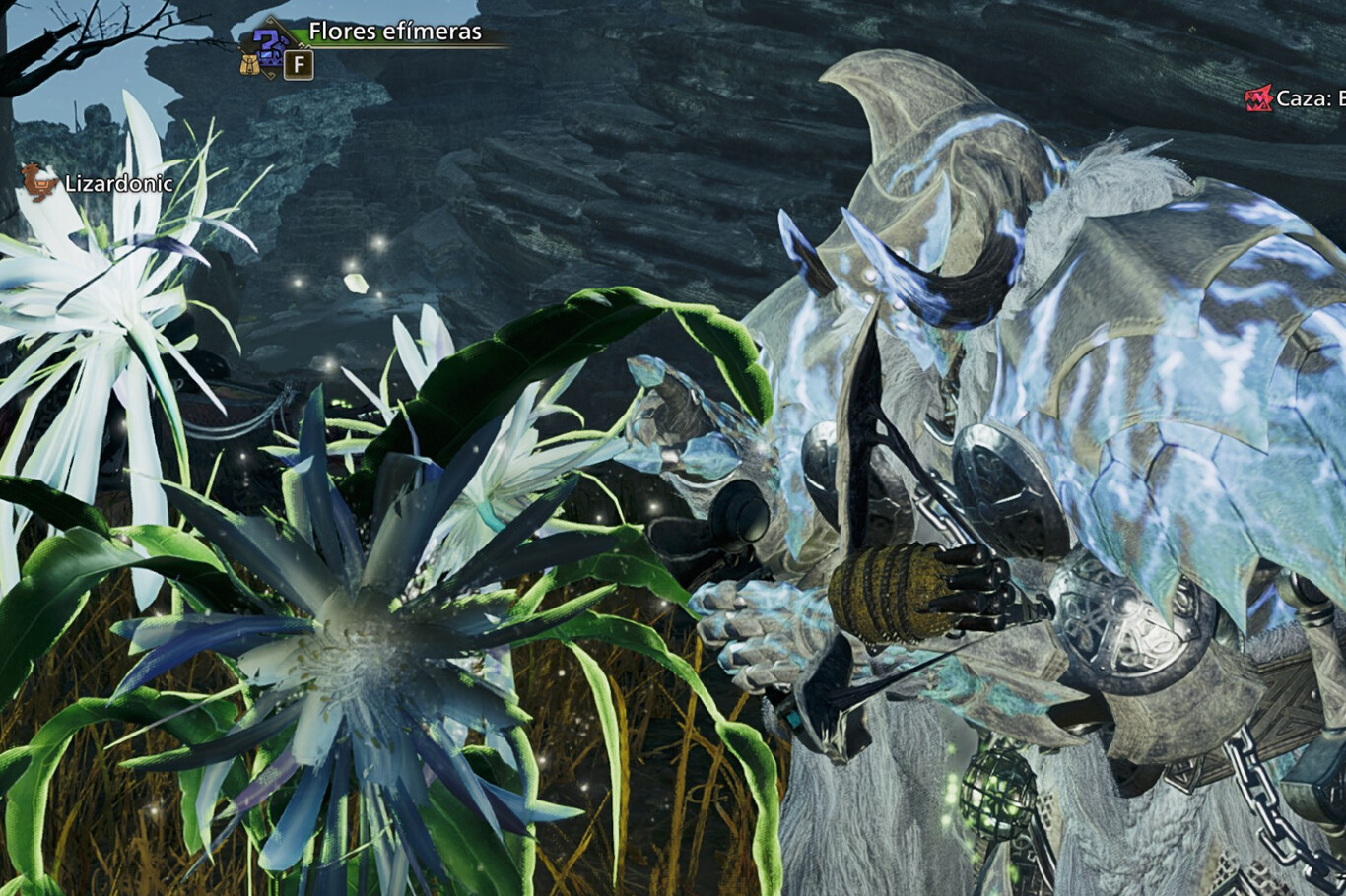 Estando en el día de luna llena (por la tarde, preferiblemente) habla con Alma o entra en un campamento y entra en el tablón de misiones. Selecciona la opcional de Balahara curtido, que se llama "El temple de un leviatán". Puesto que esta misión comienza siempre por la tarde, te vendrá bien para cosechar las flores. Cerca del campamento de Zona 10: Sureste encontrarás una flor efímera.