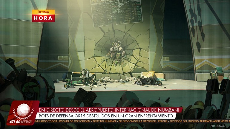 "Bots de defensa OR15 destruidos por un atacante desconocido en el aeropuerto de Numbani. No hay informes de bajas civiles", se puede leer en Twitter. La noticia va acompañada de una imagen que muestra la escena del crimen y las víctimas; algo que también pueden ver los usuarios dentro del reino de pruebas de Overwatch, donde Blizzard testea los cambios y novedades antes de ponerlos a disposición de todos los usuarios.