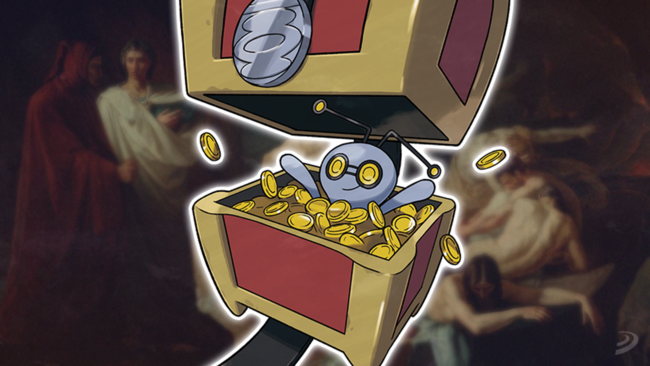 Habiendo comprendido cómo Gimmighoul estaba moralmente condenado a tener antenas, ahora la cosa se pone fea: no es un bicho, es un fantasma. El hecho de que sus ojos parezcan monedas podría ser una referencia a la costumbre helénica de cerrar los párpados de los difuntos con estas para que paguen a Caronte, el barquero del Hades, el viaje a través del río Aqueronte. Las buenas intenciones de este duende terminan ahí.