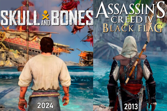 Entre ambos videojuegos de Ubisoft hay 11 años de diferencia, y en el vídeo de arriba se puede apreciar algunas aspectos interesantes, desde el agua hasta cómo se caza en ambos títulos. También se ha visto cómo es el combate naval, aspecto donde los dos videojuegos más destacan, así como también en cómo es el límite del mapa. El abordaje es algo que no está presente en Skull & Bones. Otros elementos menores están en cómo la tripulación canta y en las huellas que dejamos al andar.