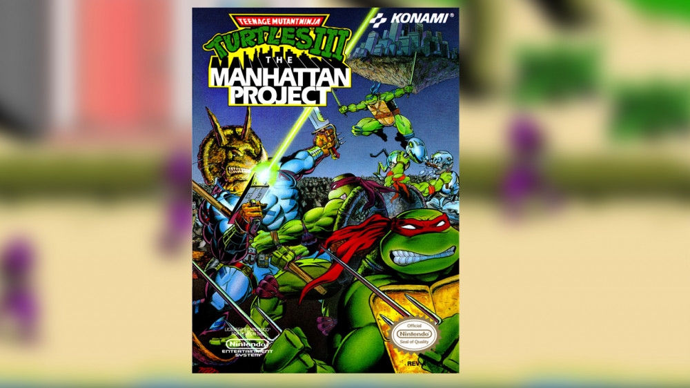 El tercer juego no llegó a Europa y mintió en su portada - El tercer juego, TMNT III: The Manhattan Project, es un caso especial, pues llegó en una etapa tardía del NES que provocó que se decidiera que no debía lanzarse en la región PAL. Además de esto, el ilustrador de la portada americana, Kevin Eastman, recibió muy poca información del juego al crear la ilustración que fue aprobada, misma que muestra la pelea contra un Triceraton que jamás aparece en el juego.