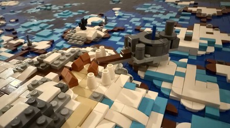 El resultado es bastante espectacular de mirar, especialmente porque se trata de un mapa tridimensional de nada menos que 44 capas, desde el nivel del mar a las montañas más altas que Todd Howard prometía que podíamos subir. Desde arriba la vista parece curiosamente pixel art, pero es cuando vas acercándote que se aprecia el nivel de detalle y mimo que hay aquí, sobre todo teniendo en cuenta las sencillas formas que permiten las piezas de Lego.