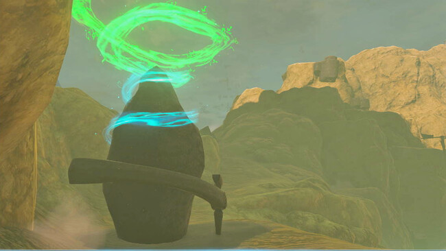 De hecho, si tenéis el set completo de la armadura aerodinámica es posible alcanzarlo si orientamos a Link en su dirección tras ''despegar'' y hacer caída libre casi hasta su portal. Como siempre lo activamos para poder tener otro punto de teletransporte y dentro nos espera su prueba: Corte Acertado.