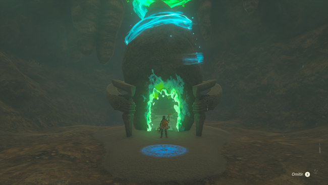 Te encontrarás con el santuario nada más entrar a la cueva, pero te darás cuenta de que este estará hasta arriba de agua y es imposible interactuar con el. Por ello, tendremos que meternos por el hueco que hay a la izquierda y explotar las rocas que hay en frente para que se cuele todo el agua por ahí.
