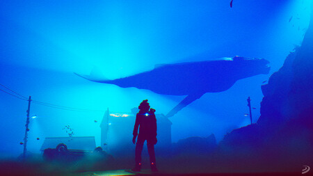 Su pequeño mundo abierto es increíblemente bonito y tiene un par de momentos con los que es fácil deslumbrarse. Cómo no hacerlo cuando ves una gran ballena nadando sobre tu cabeza, o tú mismo interactúas con tiburones, tortugas y otros peces. Se nota que hay mucho cariño en el diseño de este mundo submarino, que cuenta además con una buena variedad de localizaciones. Me encanta por ejemplo el efecto que genera ver zonas del mapa cubiertas de petróleo, porque sientes impotencia al ver cómo destruye algo tan precioso como el lecho marino. La música también acompaña bien a esta historia retrofuturista que nos transporta a un 1979 alternativo, donde vivimos con un ordenador parlante al que no le resulta incómodo decir que "la empresa vigila cada palabra que dices por tu seguridad", o que los sindicatos son malos para el empleado.