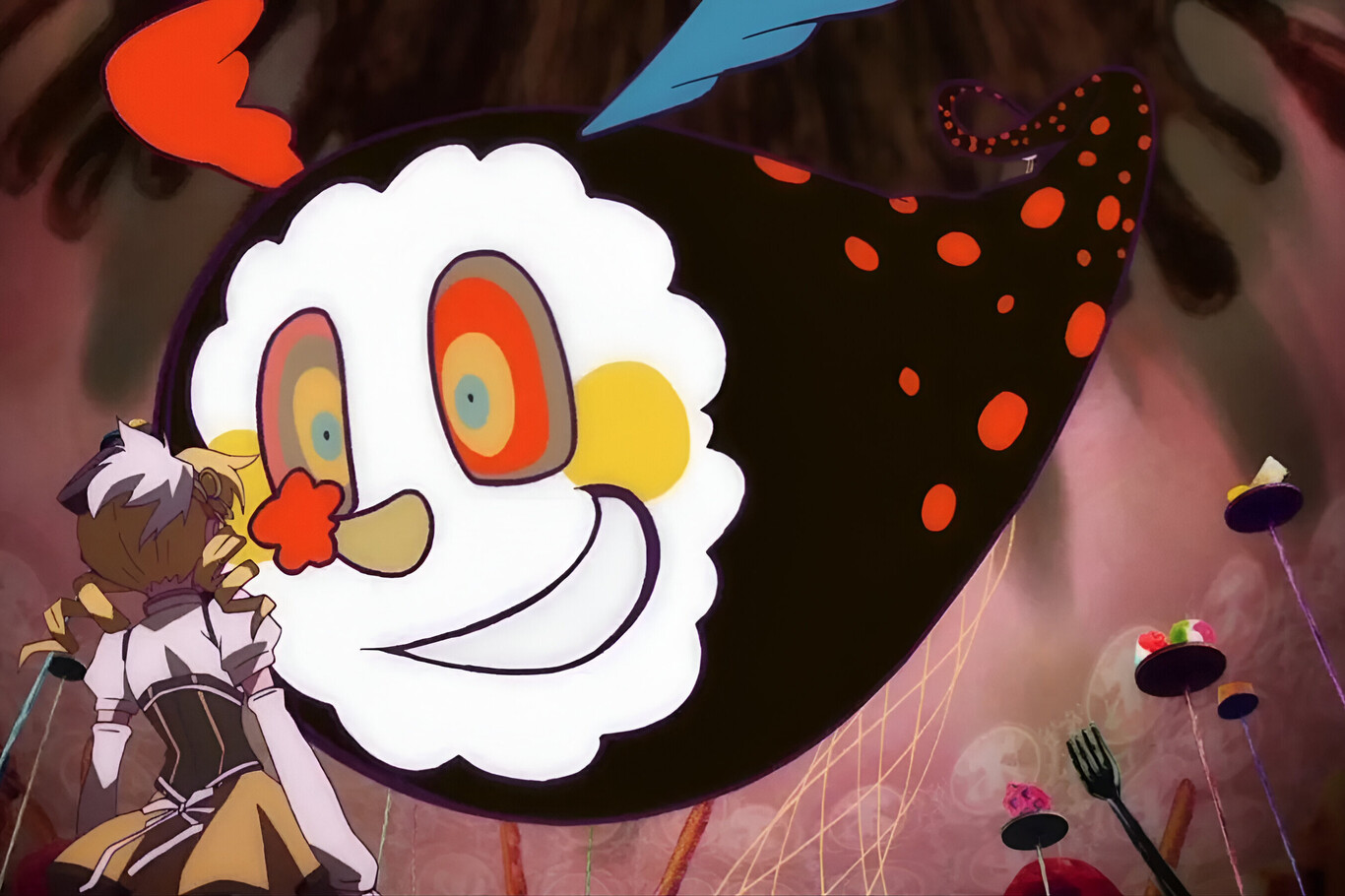 No hay nada en los primeros compases de Madoka Magica distintos a los de cualquier otra serie de Magical Girls: chicas de instituto con vidas corrientes, criaturas parlanchinas y adorables, y modelitos extravagantes. Sin embargo, por mucho que la belleza de la animación trate de disfrazarlo, poco a poco el espectador comienza a profundizar en un mundo mucho más oscuro. La dimensión de las brujas parece un lugar salido de Alicia en el País de las Maravillas y es desde el momento en el que entran en ella cuando comienza a verse la verdad detrás de las apariencias.