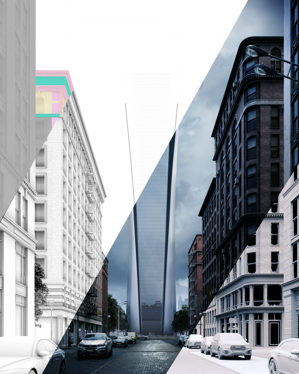La imagen conceptual corresponde a Danik Mishanin, un artista 3D que reside en Rusia de acuerdo a su descripción de perfil en ArtStation. Mishanin ha compartido en la red varias imágenes donde podemos observar con todo detalle el rascacielos, con una bonita zona central acristalada que refleja los alrededores de su ubicación.