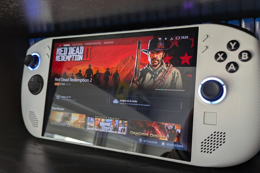 En cuanto al panel, algo vital en este tipo de dispositivos, monta un IPS de 8 pulgadas con resolución 1920 x 1200p y una tasa de 120 Hz (compatible con frecuencia variable) que le sienta realmente bien. Siendo esta en color blanco la que viene con Windows 11 Home en cuanto a su sistema operativo (aunque podemos instalarle SteamOS), lo que nos abre las puertas a Game Pass, nuestras bibliotecas de Steam y Epic Games y mucho más.
