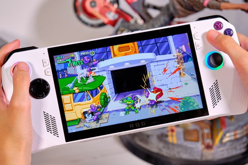 Este modelo de ROG Ally viene con un procesador de 8 núcleos y 16 hilos, más 16 GB de memoria RAM DDR5 y 512 GB de almacenamiento interno en forma de SSD NVMe (ampliable mediante tarjetas microSD de gran capacidad). La consola cuenta con una genial ergonomía, unos joysticks asimétricos y botones traseros. Y Windows pone la guinda en materia de software, lo que nos abre la puerta a servicios como Game Pass.