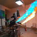 De hecho, el montaje requiere una habitación despejada y un extintor, dado que existe un alto riesgo de incendio al utilizar llamas reales. Como era de esperar, incluso un sistema tan alocado como este tiene aspectos que mejorar. Un ejemplo de ello podría ser el uso de un solo monitor, ya que este podría llegar a quedar bloqueado por los controles cuando la silla gira sobre sí misma.