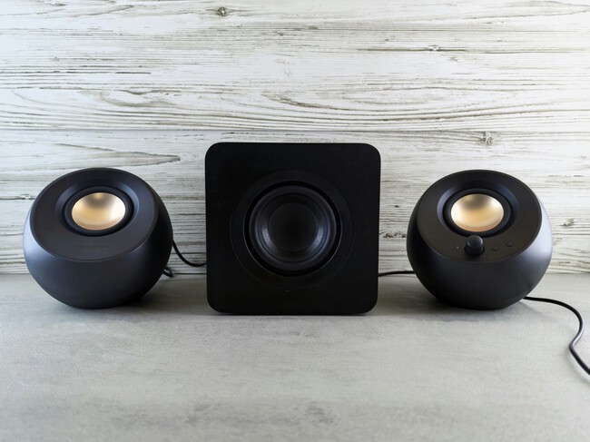 Los modelos añejos, sobre todo aquellos activos (autoamplificados) de marcas como Logitech, Creative o Trust pueden usarse para mejorar el sonido de un televisor. Así, para paliar el sonido deficiente debido al diseño ultrafino, puedes sacar partido a estos viejos altavoces que tienes por casa, ya que son fáciles de instalar y ofrecen un sonido estéreo más potente y preciso en comparación con los altavoces integrados. Sin embargo, es esencial que tu TV tenga salida compatibles (véase, por ejemplo, una salida para auriculares con entrada jack), dado que de lo contrario no podrías conectar tus altavoces.