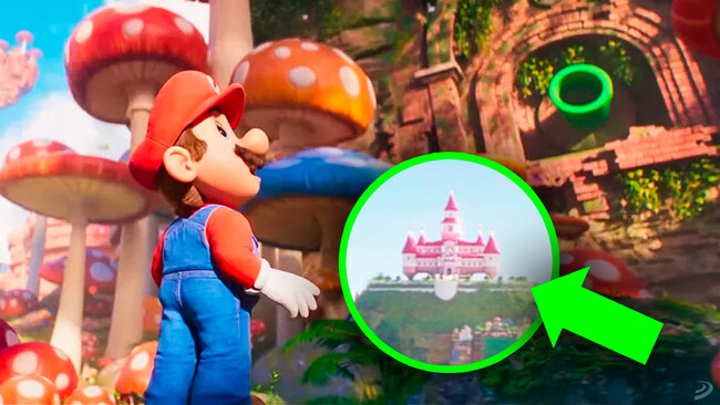 El amplio vistazo al Reino Champiñón con el que cierra el tráiler (antes de enseñar a Luigi) está lleno de guiños y referencias. En él, podemos ver como Mario salta a través de los champiñones, islas flotantes ya vistas en algunos títulos del personaje y el conocidísimo castillo de la princesa Peach que, además de ser uno de los grandes protagonistas de Super Mario 64, parece que contará con mucha importancia en la película.