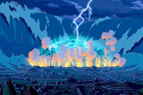 Ahora vamos con el desastre como tal. Aunque en un inicio se presenta como un mal enviado por los dioses, más tarde el rey admite que intentaron usar el Corazón de la Atlántida como arma de guerra. Eso significa que la civilización no era pacífica, y de este suceso se puede entender que la realidad es que intentaron sacar más energía de la que pudieron controlar. Algo así como un desastre nuclear.