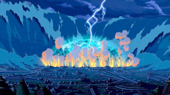 Ahora vamos con el desastre como tal. Aunque en un inicio se presenta como un mal enviado por los dioses, más tarde el rey admite que intentaron usar el Corazón de la Atlántida como arma de guerra. Eso significa que la civilización no era pacífica, y de este suceso se puede entender que la realidad es que intentaron sacar más energía de la que pudieron controlar. Algo así como un desastre nuclear.