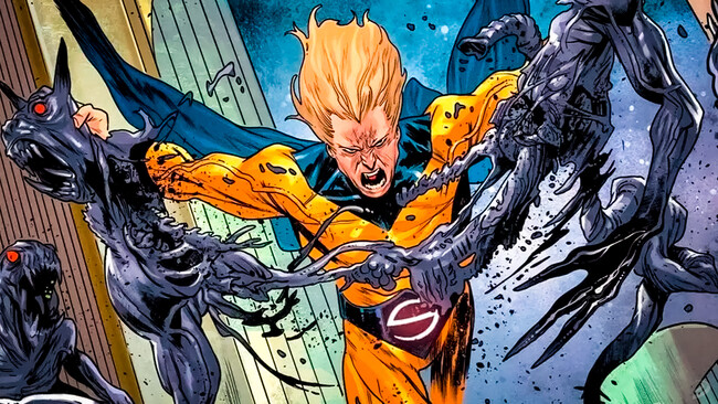 The Sentry es un personaje relativamente reciente en la mitología de Marvel. Presentado a principios de los años 2000 como parte del sello Marvel Knights (dedicado a una lector más maduro, pero dentro de la continuidad general de la editorial), este héroe es único no solo por sus poderes y habilidades, sino también por su complejidad emocional. En esencia, para entender bien qué podemos ver en cines, imaginad a un Superman, pero uno con una aterradora lucha interior que trasciende los límites de la cordura. Este trastorno de personalidad se conjuga con una cantidad de poder tremenda, capaz de poner en jaque a todo un equipo de Vengadores. Sus habilidades no son alienígenas, sino que provienen de un suero experimental que acelera sus moléculas otorgándole fuerza, velocidad y sentidos mejorados. Se le atribuye "el poder de un millón de soles explotando".