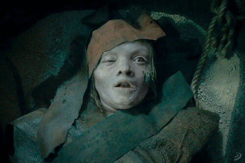 En ese sentido, la película conecta directamente con ese subgénero de "niños poseídos" que tantas veces hemos visto en el cine de terror. Solo que aquí todo está revestido con una estética y una mitología que remite tímidamente a Egipto. Es, en cierto modo, una película de posesiones con una skin de pago egipcia, una especie de actualización que busca encajar el mito en las sensibilidades actuales y que personalmente no creo que funcione especialmente bien. Pero también creo que es lo de menos. Aunque la idea general no es completamente original, sí está ejecutada con suficiente personalidad como para resultar interesante. Cronin sabe cómo hacer que lo familiar se sienta incómodo, y eso es algo que no todos los directores consiguen.