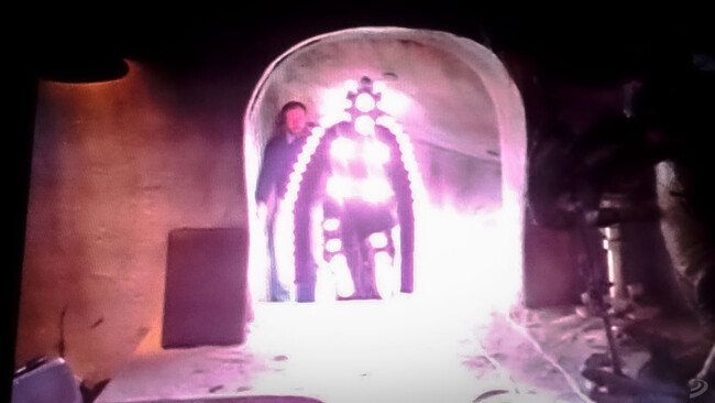 Imagino que rodar escenas con semejante personaje debía ser una pesadilla, especialmente para el director de fotografía Alan Hume. No solo por lo difícil que resultaría controlar la iluminación de un ser que literalmente emitía luz por todas partes, sino porque el conjunto en pantalla resultaba demasiado ridículo incluso para una saga que nunca ha tenido miedo al exceso estético. Además, el calor que generaba el traje y los focos que llevaba acoplados debía ser tremendo…