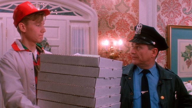 En Solo en casa la pizza juega un papel más protagonista de lo que pensamos. Es precisamente un berrinche por haberse quedado sin su pizza favorita el motivo por el cual Kevin (Macaulay Culkin) es "olvidado" en casa por sus padres. Antes de que tenga eso lugar, en el minuto 9 de metraje, vemos cómo el padre cuenta a la familia cómo "la gracia de las pizzas" les van a costar 122,50 dólares más las propias, más de 12 dólares por unidad. "¿Por unas pizzas?", le pregunta su mujer.