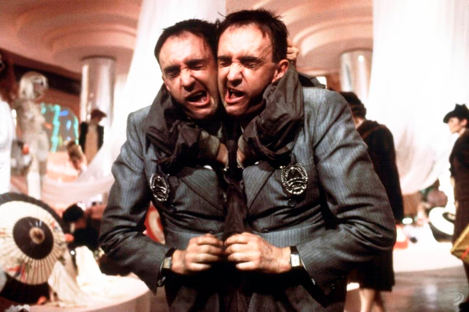 Brazil surge en un momento histórico marcado por el neoliberalismo agresivo de Thatcher y Reagan, la privatización masiva de servicios, la desregulación económica y el crecimiento de grandes corporaciones, que como véis no es algo exclusivo de 2026. La paranoia ante el terrorismo y la omnipresencia de la lógica empresarial se mezclan en la película con un autoritarismo estatal grotesco, legitimando lo que podría llamarse un Estado-corporación que resulta tan inevitable como omniprsente.