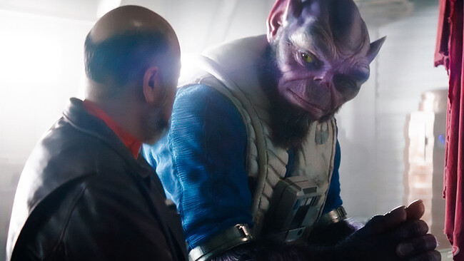 Las sorpresas no acabaron ahí, porque rápidamente entra en escena un curioso personaje alienígena: Garazeb 'Zeb' Orrelios. Seguramente el nombre no diga nada a la mayoría de los espectadores de The Mandalorian, pero para los fans que hayan disfrutado de la serie de animación Star Wars Rebels (a cargo de Filoni) seguro que han reconocido, en carne y hueso digital, a uno de los protagonistas de la serie. Las curiosidades no terminan ahí. Este alienígena es un Lasat y su aspecto pertenece a uno de los primeros diseños encargados por George Lucas durante la preproducción de La Guerra de las Galaxias, la primera película de la saga y que luego sería conocida como Episodio IV: Una Nueva Esperanza, El diseño realizado por el genial artista Ralph McQuarrie era, nada más y nada menos, para el personaje que, finalmente, terminaría siendo el wookie preferido de todo el mundo, Chewbacca.