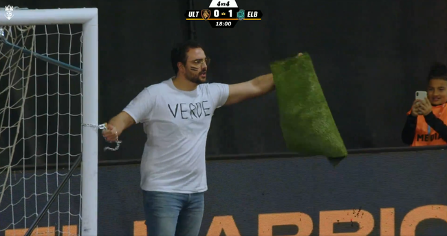 Las protestas se trasladaron a la propia liga de un modo muy deportivo, como es con un espontáneo saltando al campo. Este hombre, en el minuto 18 del Ultimate Mostoles contra el Barrio y, coincidiendo con el lanzamiento del dado, se ató a una de las porterías. El espontáneo saltó con una camiseta blanca con las frases de "queremos el césped verde" y un trozo de tapete verde en su otra mano. Las caras sorpresa llenaron el Cupra Arena, especialmente la de Piqué y Spursito, que dejó uno de los memes del año.