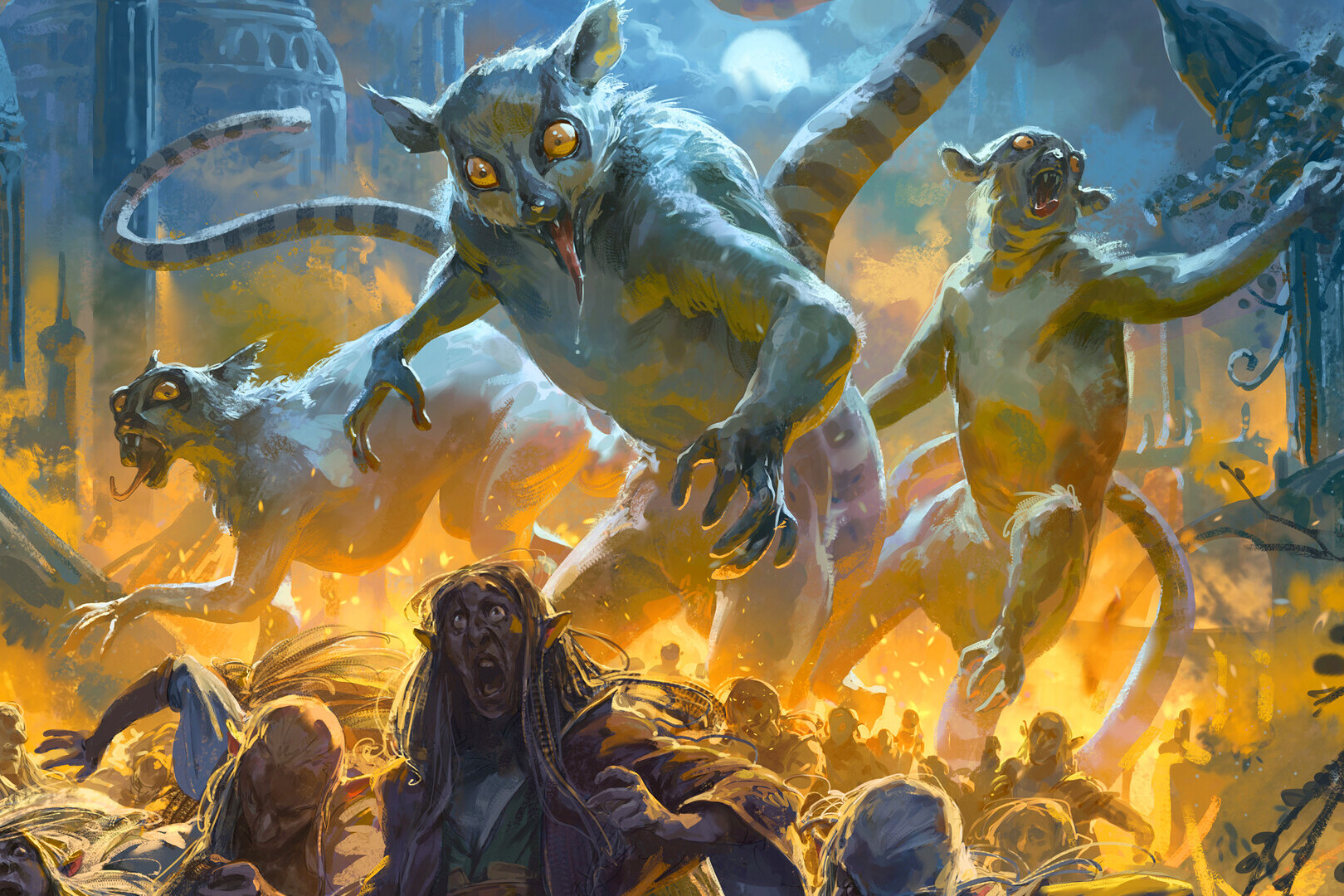 "Creo que quieres decir lémures gigantes, un tipo de espíritu maligno que… ¡POR TODOS LOS DIOSES, ¿QUÉ SON ESAS COSAS?!"